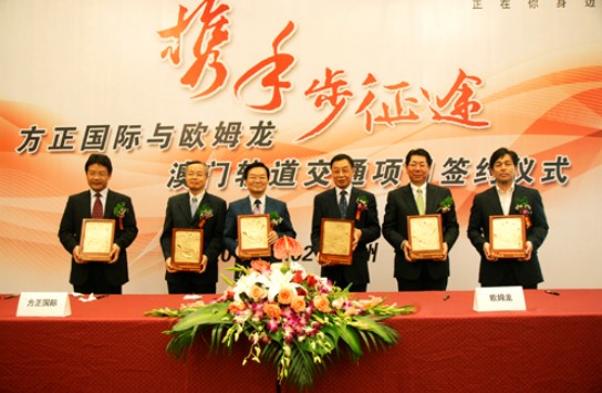 方正集團總裁張兆東在簽約儀式上表示:“我相信在歐姆龍和方正國際雙方的共同努力下,澳門軌道交通項目將會順利、高效地完成,中國的智能交通領(lǐng)域也將得到進一步的推動和發(fā)展。方正集團將一如既往地支持方正國際與歐姆龍的合作。”